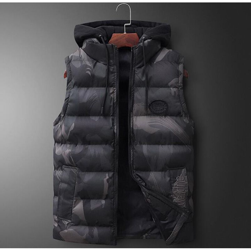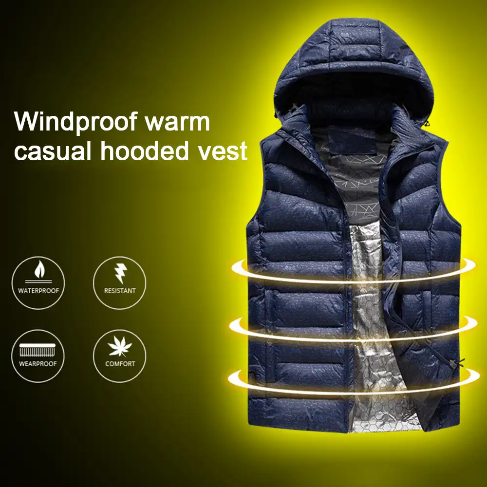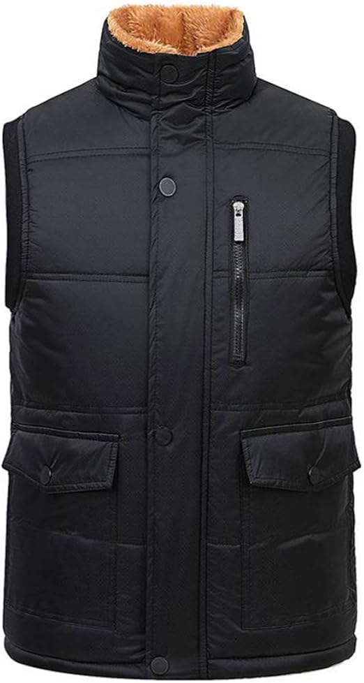 Men Casual Winter Warm Vest Collar Stand Zipper Sleeveless Top