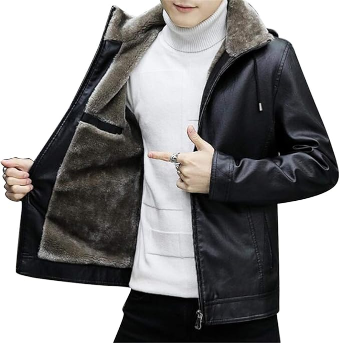 Men S Clothing Leather Jacket Velvet Warm Winter Leather Hooded