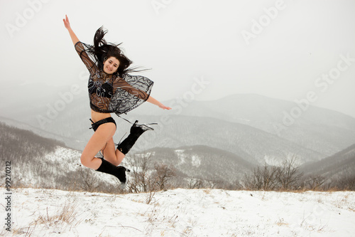 A Beautiful Woman In A Bathing Suit In The Winter In The South