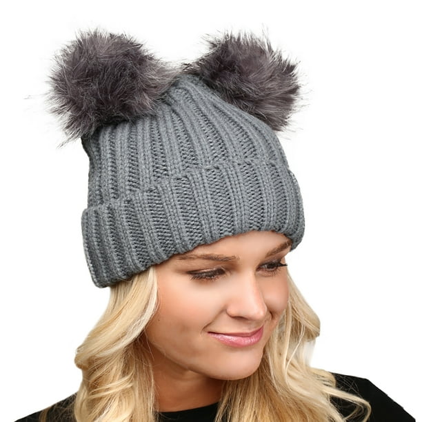 Simplicity Women S Warm Wool Knit Fuzzy Double Pompom Winter