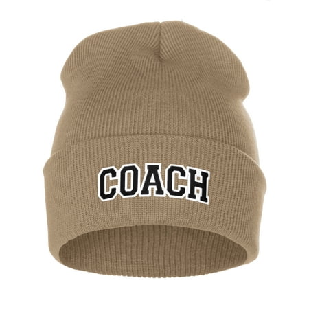 I W Sports Team Coach Arch Letters Winter Knit Cuffed Beanie Hat