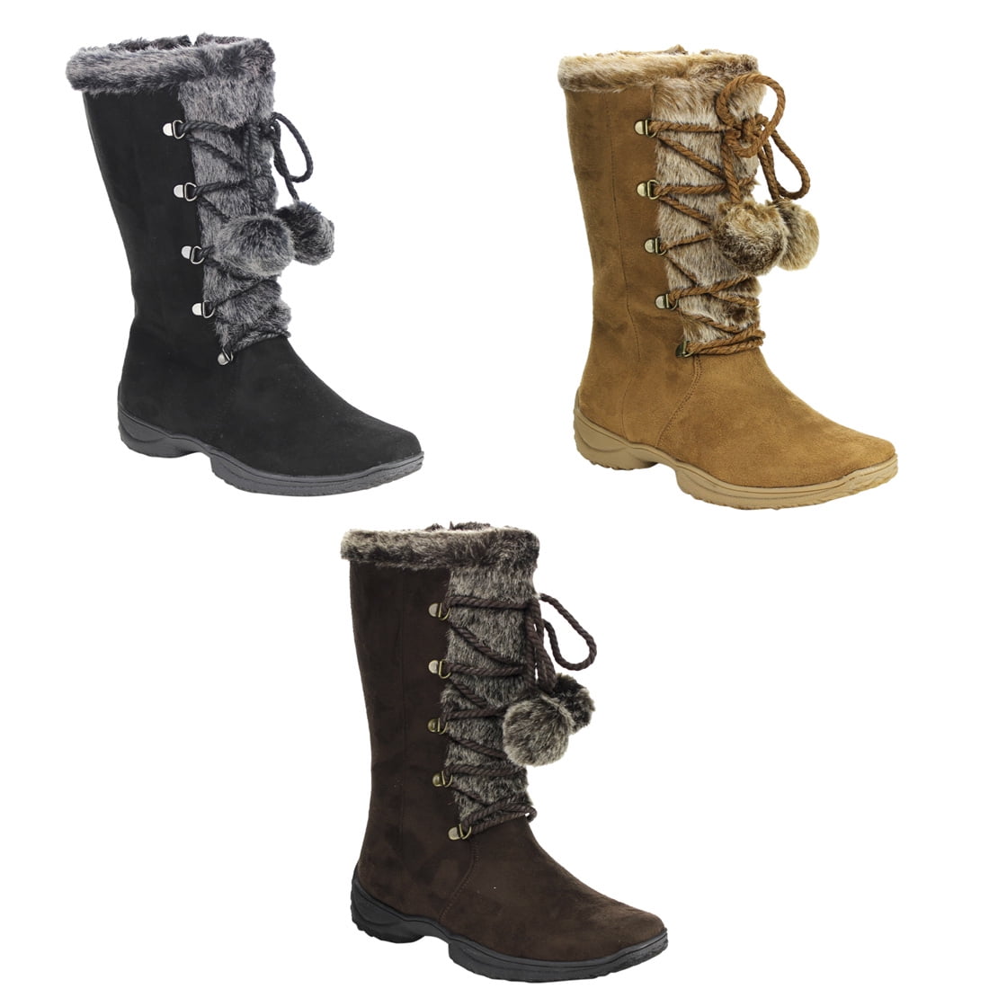 E Toy Word Women Winter Boots Pom Poms Warm Snow Boots Casual Slip
