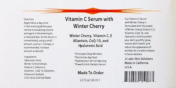 Amazon Com Vitamin C Serum With Winter Cherry Vitamin C E Allantoin Coq 10 And Hyaluronic Acid 2 3oz Beauty