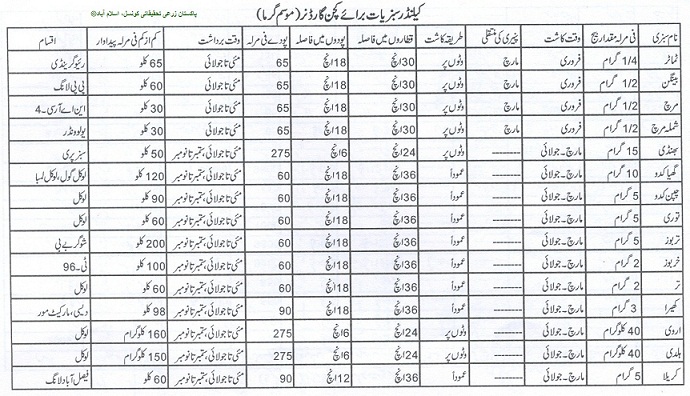 Crop Calendar Punjab Pakistan Minfa Ethnobotany Vegetarian Cuisine