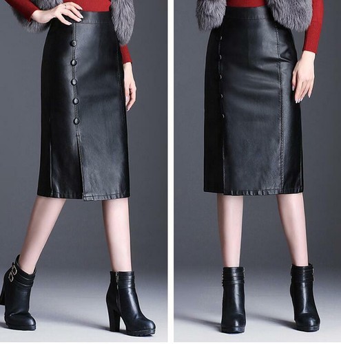 2020 Womens Autumn And Winter Black Leather Skirt Ginger High