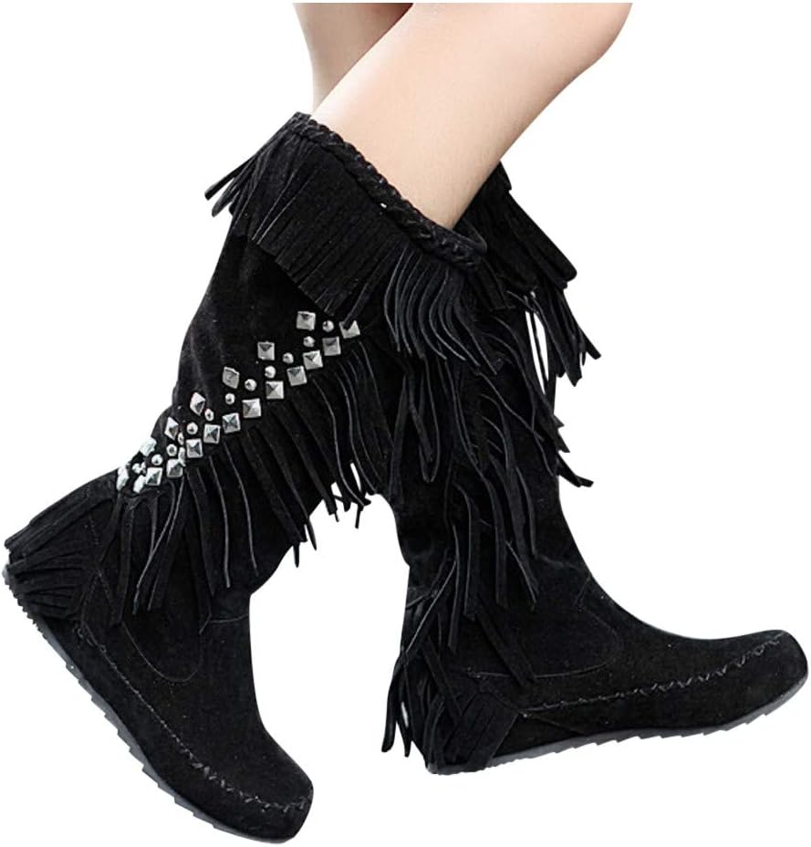 Amazon Com Women Knee High Boots Fashion Flat Heel Lace Decor