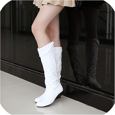 New Fashion Womens Winter Casual Solid Flat Pointed Toe Knee High