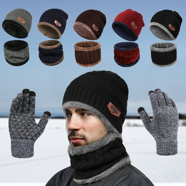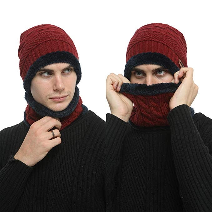 Beanie Hat Scarf Set Skull Cap Winter Fleece Lined Knit Hat Thick