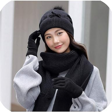 Iwinter 3 Pieces Set Women Winter Hat And Gloves Sets Cotton