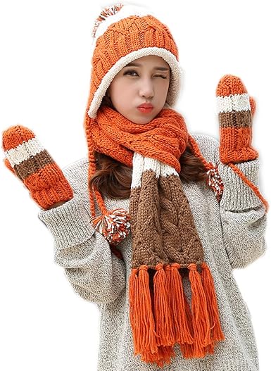 Alldecor Winter Christmas Gifts 3pcs Handmade Knitted Hat Scarf