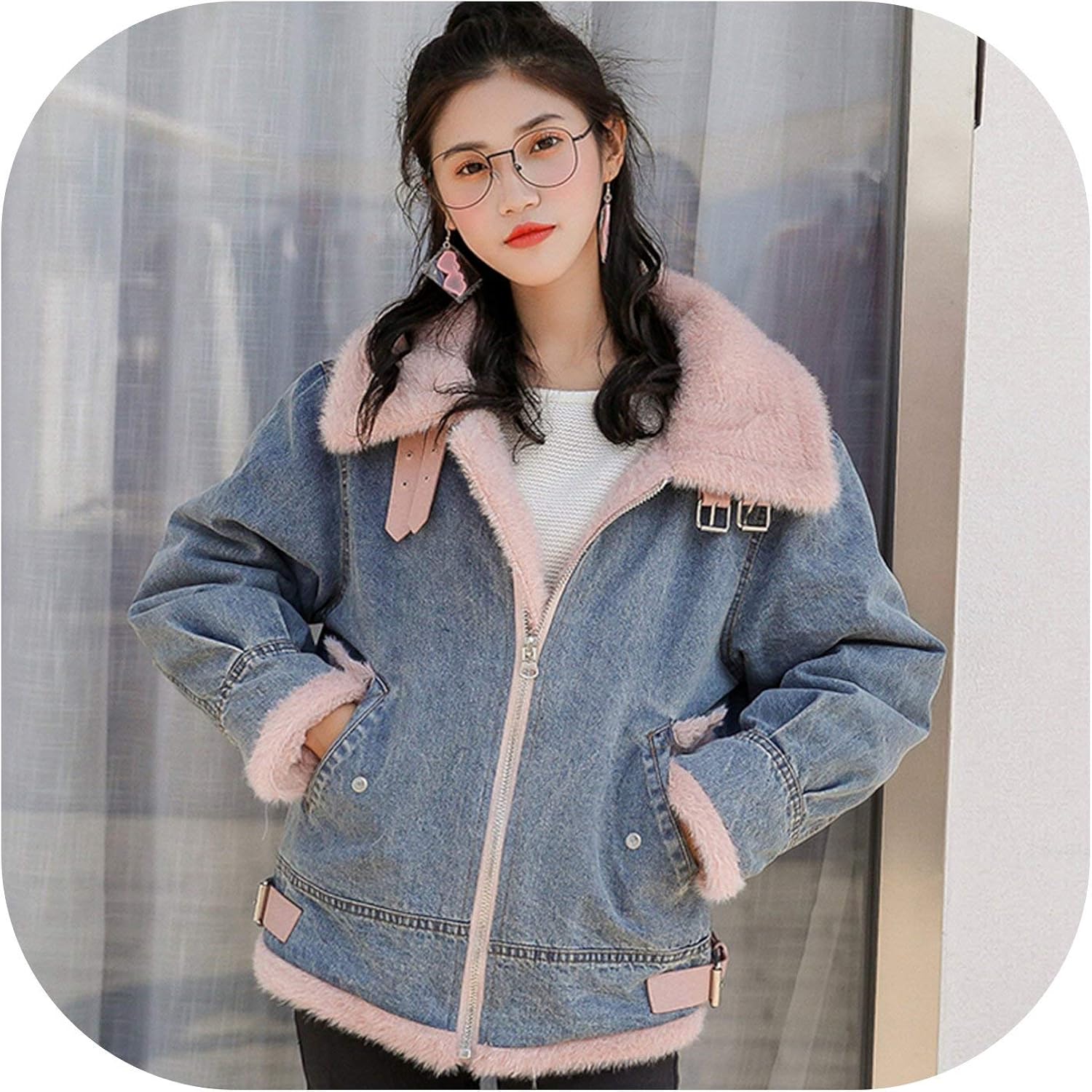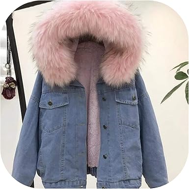 Warm Wool Liner Denim Jacket Women Winter Casual Jeans Jacket Fur Coat Female Vintage Thick Pink L At Amazon