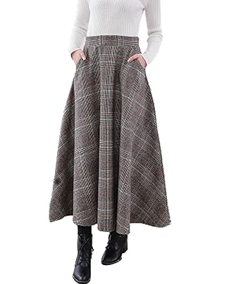 Femirah Women S High Waist Woolen A Line Skirt Long Maxi Winter