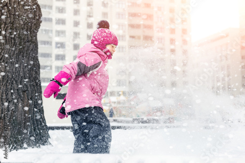 Little Cute Baby Girl Having Fun Playground Winter Children Winter