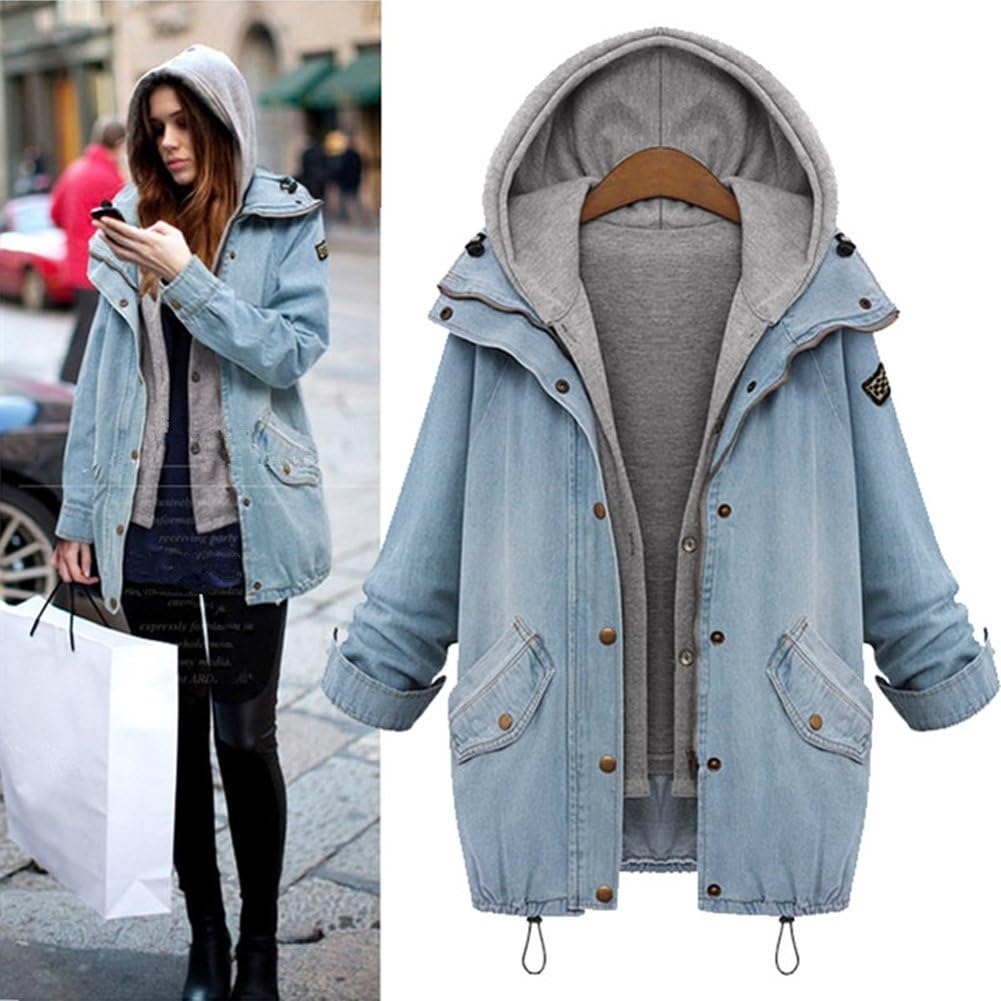 Oversized Black Denim Jacket Plus Size Women Single Breasted Long