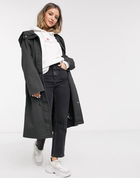 Sale Moncler Damen Chic Khaki Lange Daunen Mantel Pelz Kragen 81cm