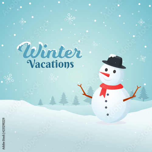 Snowman In Winter Landscape Royalty Free Vector Image