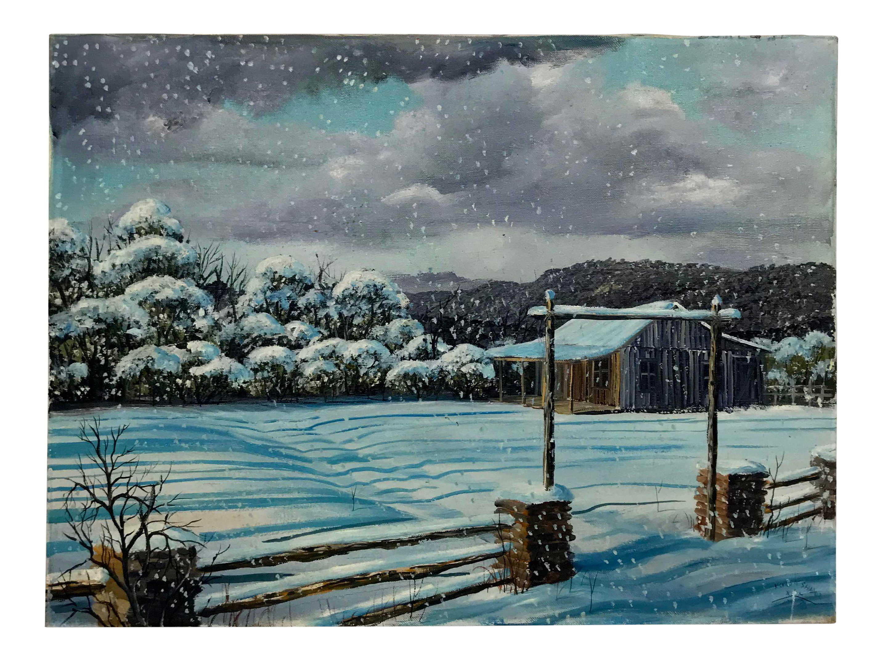 Signed Original Winter Scene Oil Painting