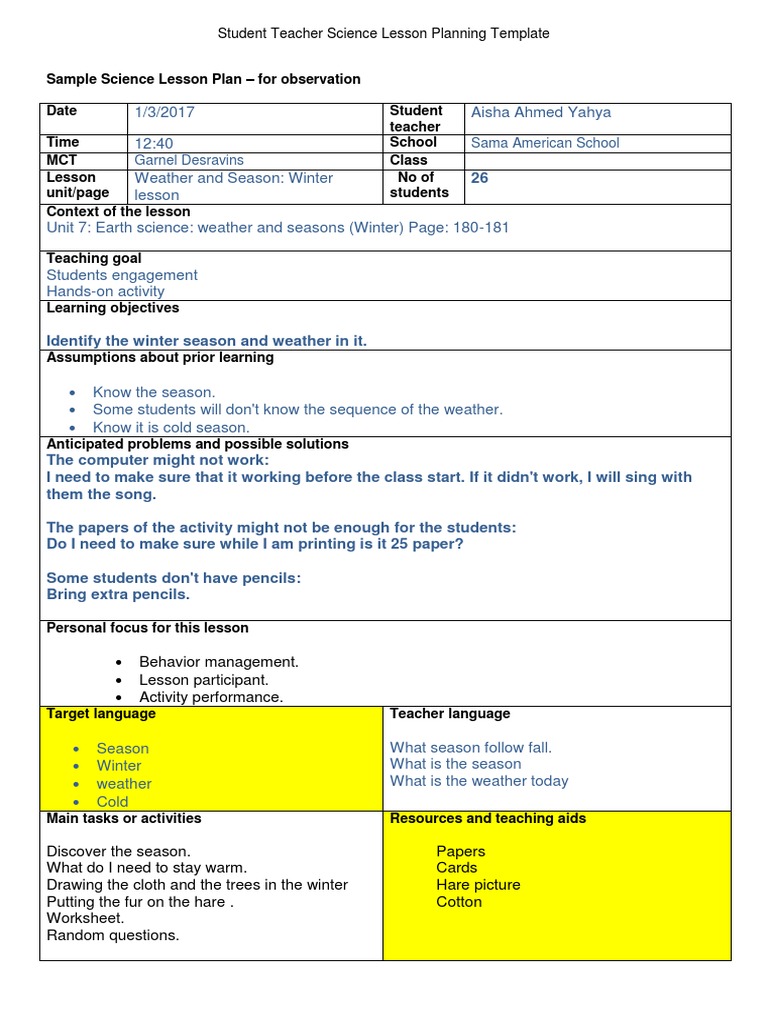 Best Lesson Plan Template Danielson Model Danielson Framework