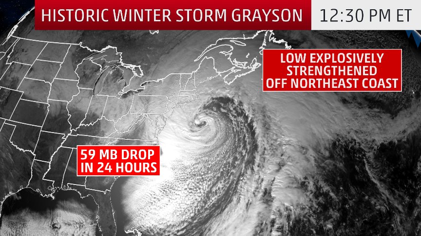 Winter Storm Grayson To Undergo Bombogenesis Bringing Damaging Winds Heavy Snow Blizzard Conditions To New England Thursday The Weather Channel
