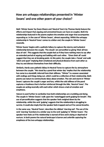 Themes Winter Swans By Owen Sheers Gcse English Literature