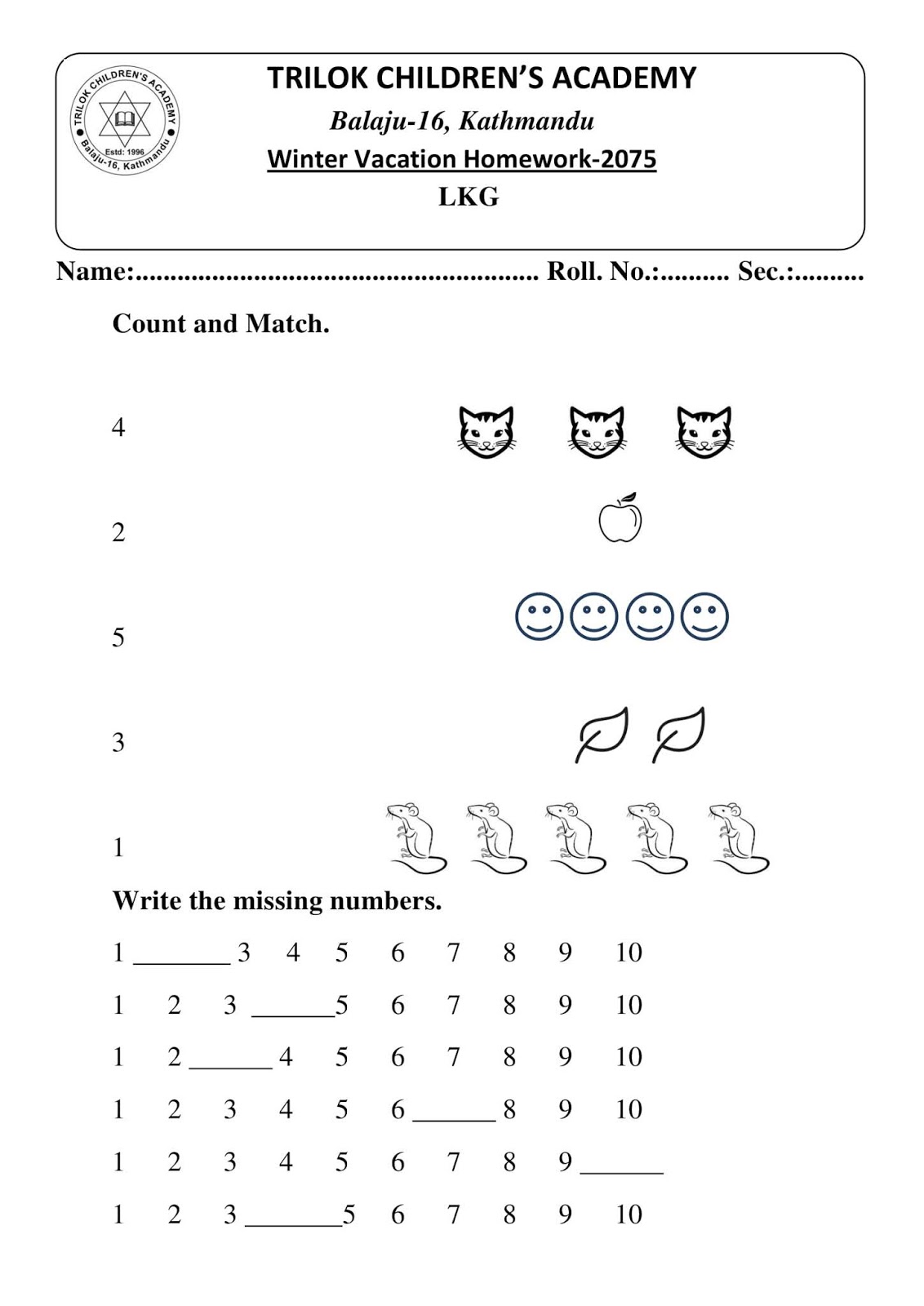 Winter Vacation Homework Laxmi Modern Academy