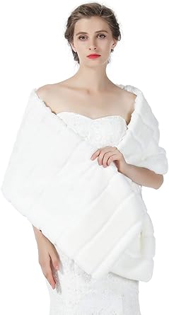 Ivory White Child Faux Fur Wrap Pearl Shrug Wedding Flower Girl