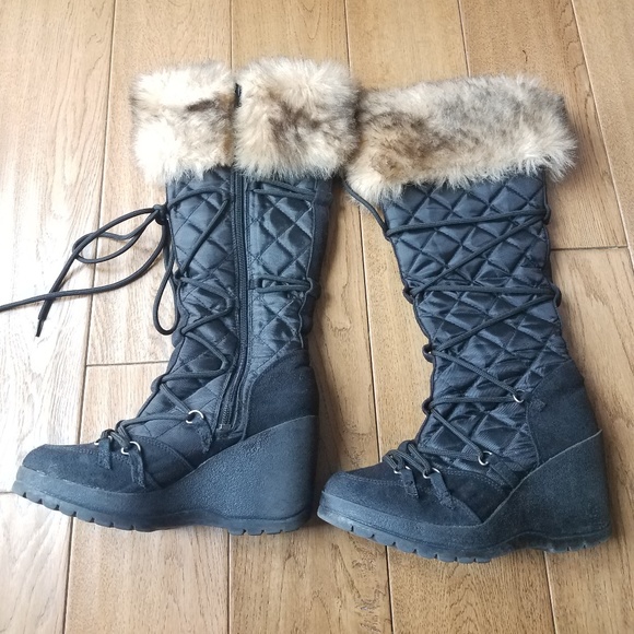 Amazon Com Fashion Thirsty Womens Faux Fur Lined Mid Wedge High