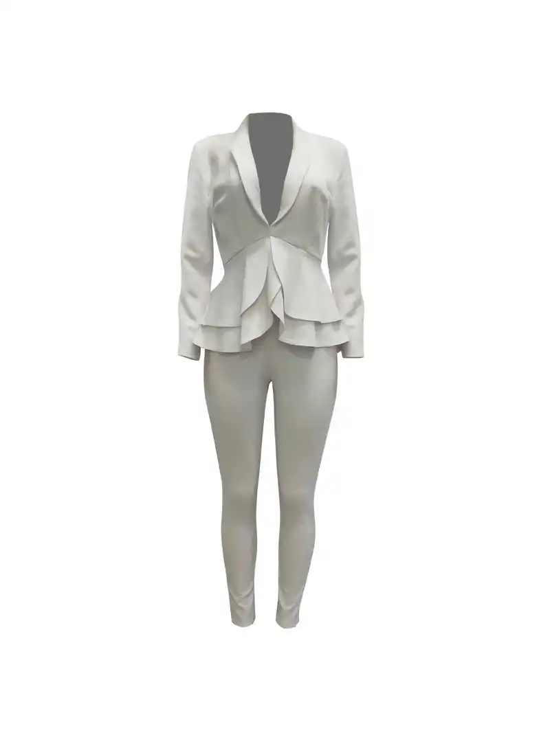 Women Fashion Winter Long Sleeves Sexy Metal Buckle 2 Piece Slim