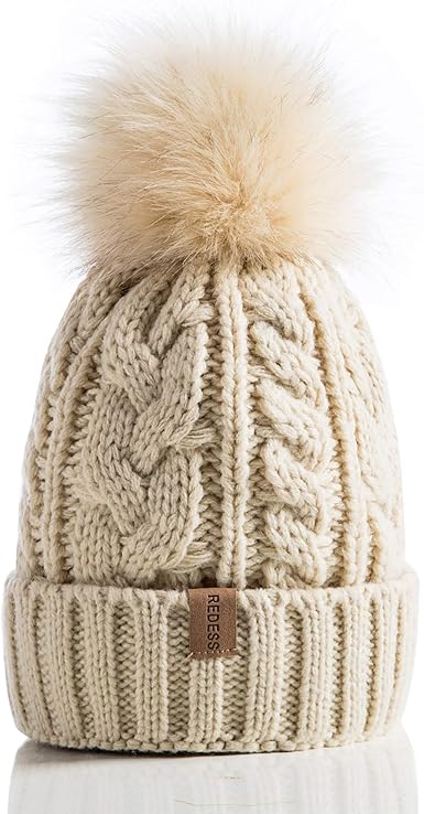 Pompom Hat Lined With Fleece Knit Beanie Womens Winter Hat Etsy