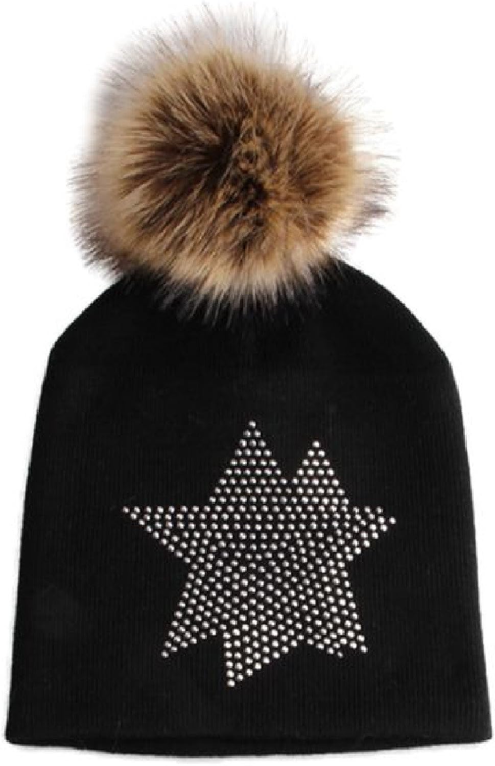 Kids Baseball Cap Cartoon Women Winter Hat Pom Pom Rhinestones