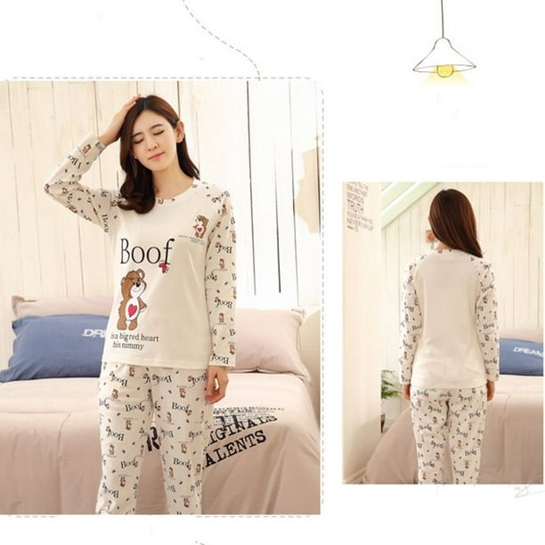 Autumn Winter Womens Pajama Sets O Neck Long Sleeve Sleepwear