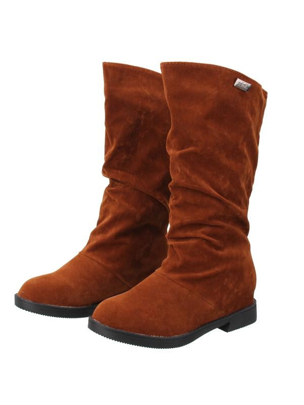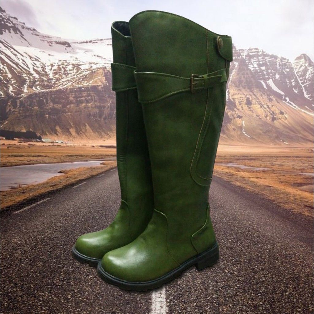 Womens Ladies Knee High Flat Winter Riding Mid Calf Buckle Zip
