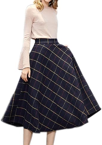 Sobrisah Women S Plaid Wool Midi Skirt A Line Vintage Winter