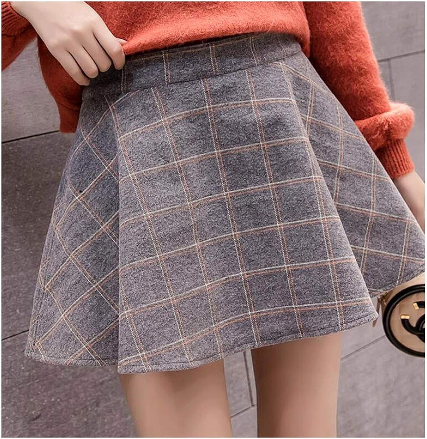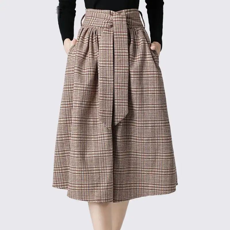 Spring Winter High Waist A Line Skirts Girls Woolen Plaid Skirts